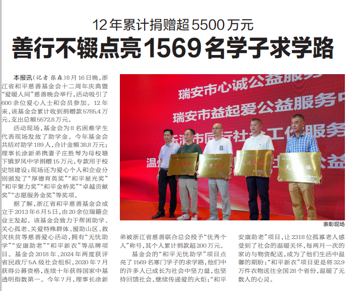 12年累计捐赠超5500万元善行不辍点亮1569名学子求学路